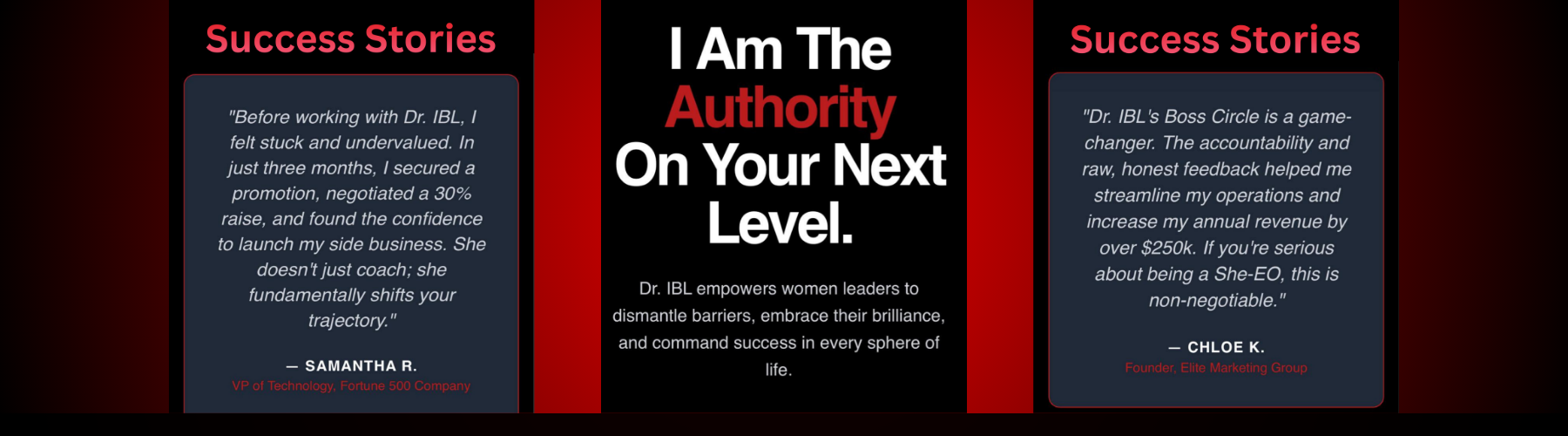 When you reserve time with Dr. IBL, you’re not just booking a session—you’re stepping into a curated experience rooted in strategy, empowerment, and intentional growth. This is a space designed exclusively for women who are ready to rise into higher leadership, cultivate clarity around their purpose, and move with the confidence of a woman who knows she’s built for more.